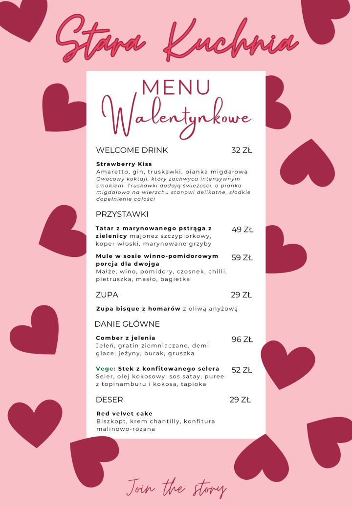 Restauracja Stara Kuchnia przygotowała dla Was romantyczną kolację, która rozpali zmysły i zachwyci podniebienia.