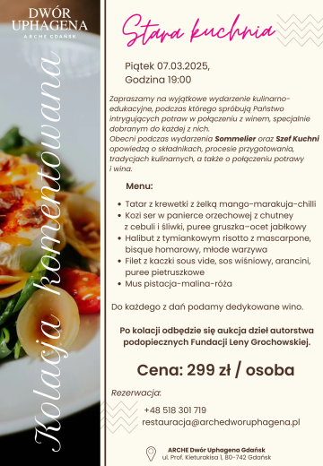 Zapraszamy na wyjątkowe wydarzenie kulinarno-edukacyjne, podczas którego spróbują Państwo intrygujących potraw w połączeniu z winem, specjalnie dobranym do każdej z nich. Obecni podczas wydarzenia Sommelier oraz Szef Kuchni opowiedzą o składnikach, procesie przygotowania, tradycjach kulinarnych, a także o połączeniu potrawy i wina.