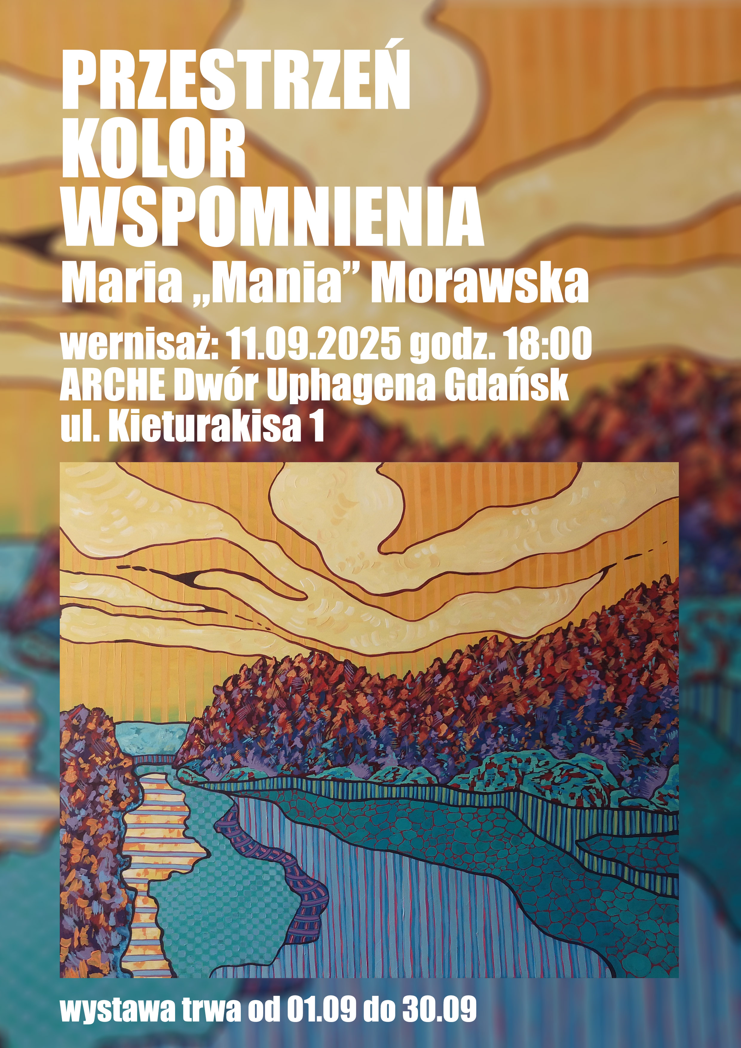 Serdecznie zapraszamy na wernisaż oraz wystawę malarstwa zatytułowaną PRZESTRZEŃ | KOLOR | WSPOMNIENIA autorstawa Marii "Mani" Morawskiej, której prezentacja odbędzie się w wyjątkowych wnętrzach ARCHE Dworu Uphagena w Gdańsku.