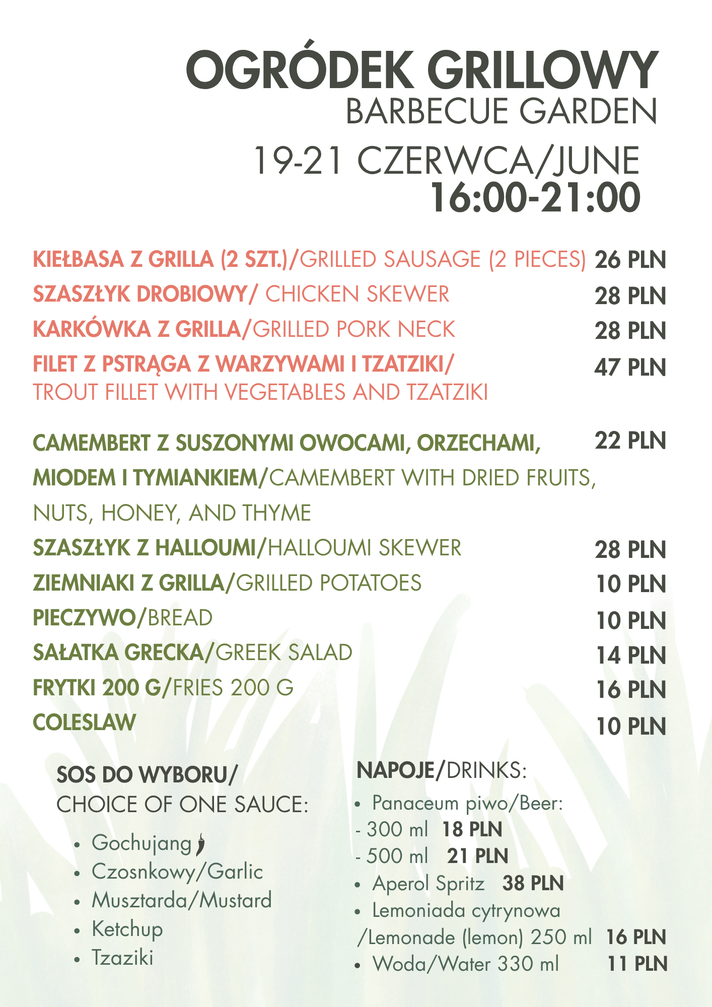 - Specjalne piknikowe menu wraz z wynajmem zestawu piknikowego